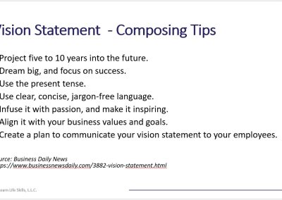 - Develop a plan to communicate the company’s vision statement to your employees. Without a vision statement, or one that is well-defined, the business risks mission creep and distraction, extending beyond the company’s core competencies.